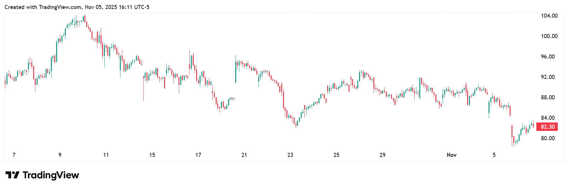 A push above $85.00 could easily spark a fresh leg higher toward the $90s.