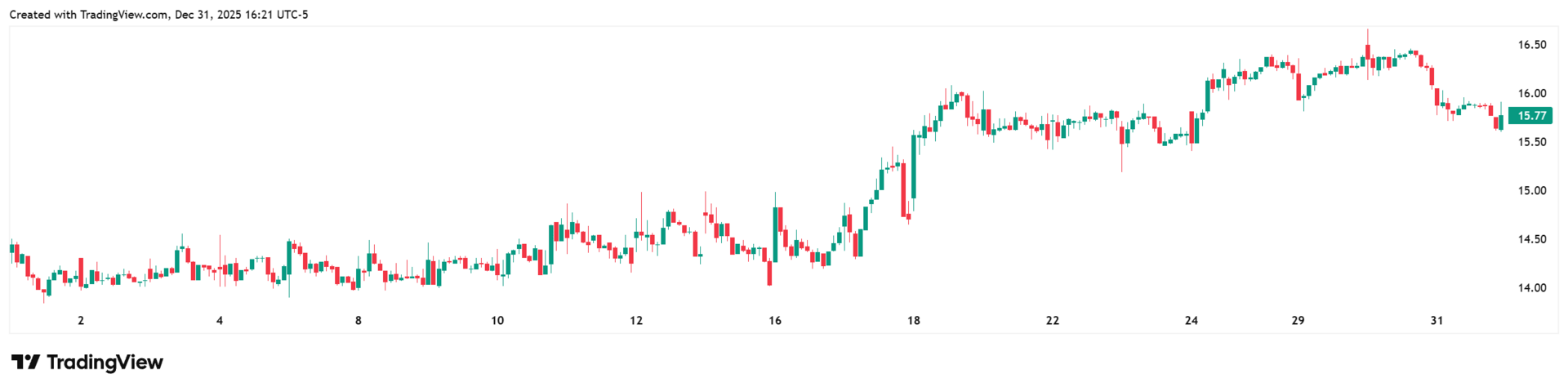 Analyst expectations: Price targets sit within a narrow band, with the current low at $14.00 and the high at $20.00.