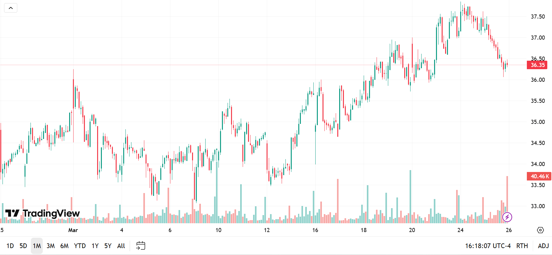 1-month trading summary: HP has pushed higher with intent, climbing just over 9% and pressing right up against its recent highs. The move has not been smooth, though.