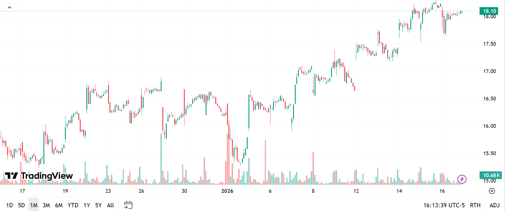 1-month trading summary: ARMN is up almost 15% over the past month, pushing toward the top end of its recent range before cooling slightly.