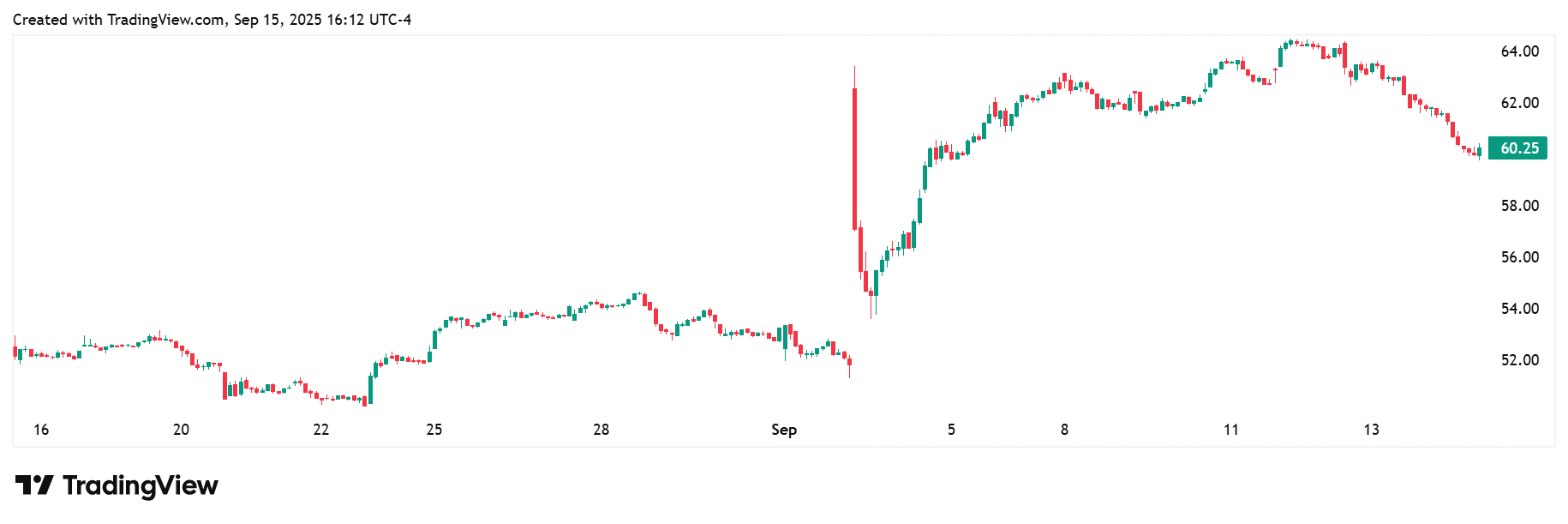 A month to remember: REV Group has been quietly ripping. Up more than 17.5% between August and September, the stock opened around $52, dipped a bit, then shot higher as investors latched onto its revenue momentum.